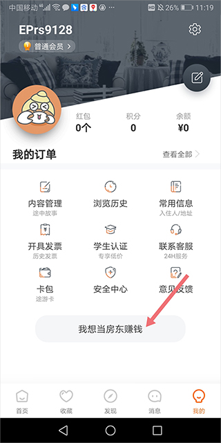 1、商家房东用户们可以使用手机号登录应用,然后在应用的【我的】页面中点击【我想当房东】
