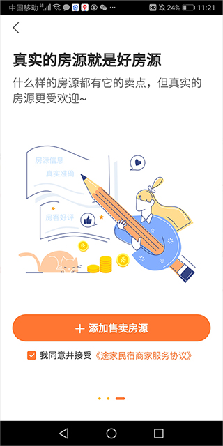 2、接着浏览相关介绍后就可以勾选商家服务协议,然后再点击【添加售卖房源】