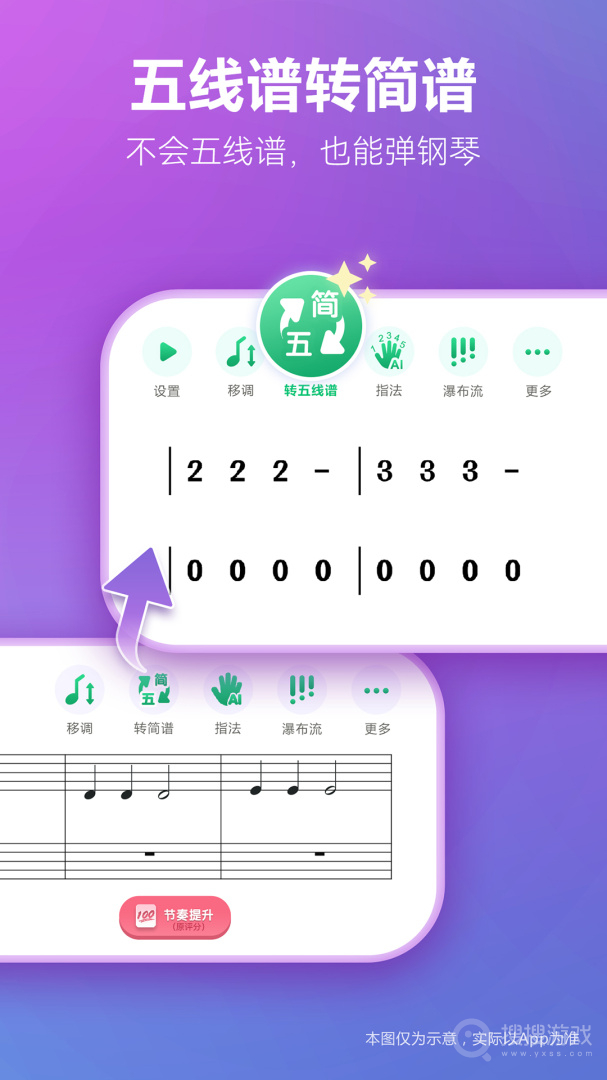播放乐谱时,智能提示系统随即启动,钢琴键盘或吉他琴颈清晰呈现于屏幕下方,每个音符的按键都会以亮灯形式指引,成为您居家学琴的得力助手。