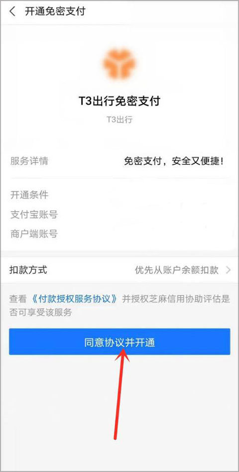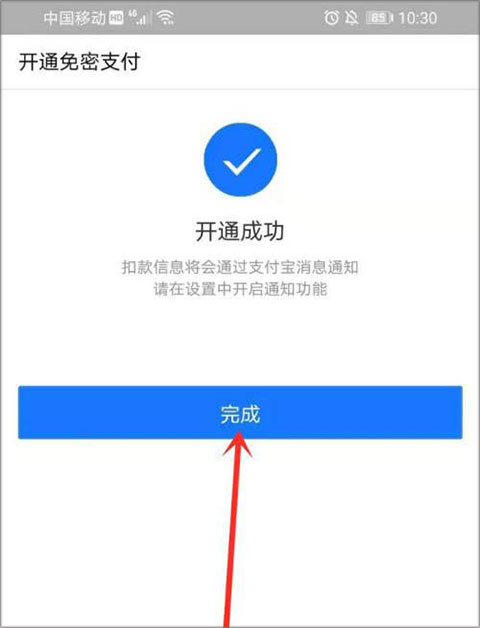 4、进入支付设置界面,选择要设置免密的支付方式,点击右侧的【去开通】。