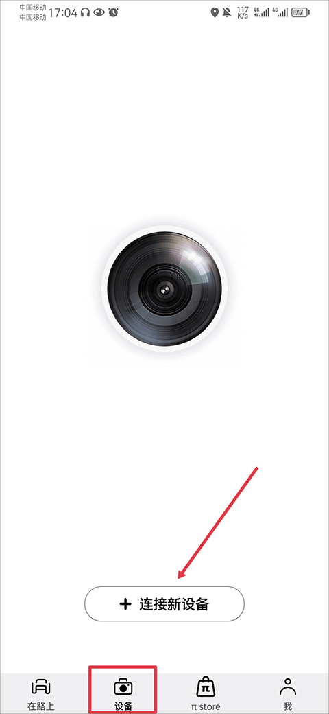1、打开盯盯拍app,在设备界面中点击连接新设备