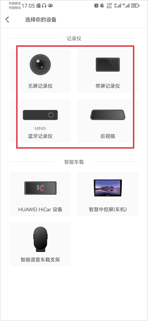 2、然后选择行车记录仪设备的型号