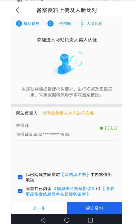 2、认证成功后点击右上角有个扫一扫,扫到时候备案专员给的二维码进入