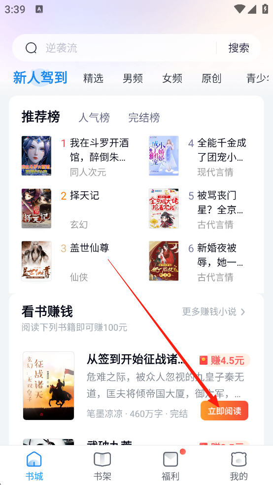 免费看海量正版小说,看的时候能领现金红包,支持提现到微信、支付宝,边读边赚太惬意。把书加书架能第一时间收到更新提醒,阅读设置也贴心,无广告弹窗干扰,通勤时看小说再合适不过!