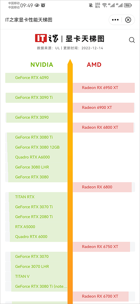 2、进入后就可以看到显卡的NVIDIA和AMD的排行榜了