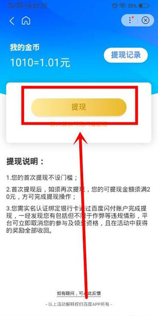 3、进入到提现这个页面中之后,在该页面中我们找到提现按钮,点击即可成功进行提现。