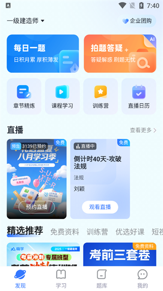 集成每日一题、拍题答疑、课程学习与直播入口,打造高效学习一站式平台。