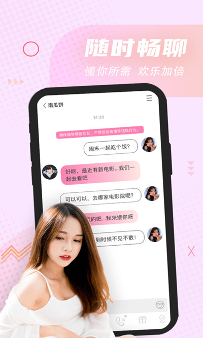 一分钟大数据分析,为你推荐默契度99%的小姐姐,轻松找到心仪的ta,语音聊天室连麦互动,男女处cp上麦秀恩爱,声优陪你1对1语音连麦入睡,深夜睡不着,与美女1对1视频聊天,更高效率确定颜值,轻轻松松交友