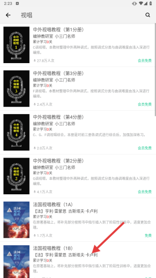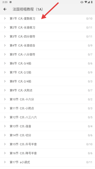 2、在视唱课程列表,找到并点击目标课程,进入课程章节页。