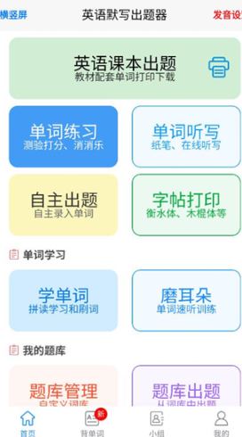 2、在首页选择你需要的课本出题功能,包括英语单词的出题、下载和打印,满足你纸质学习的需求。