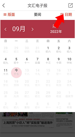 2、进入电子报界面后,点击日期按钮可查看指定日期的电子报内容