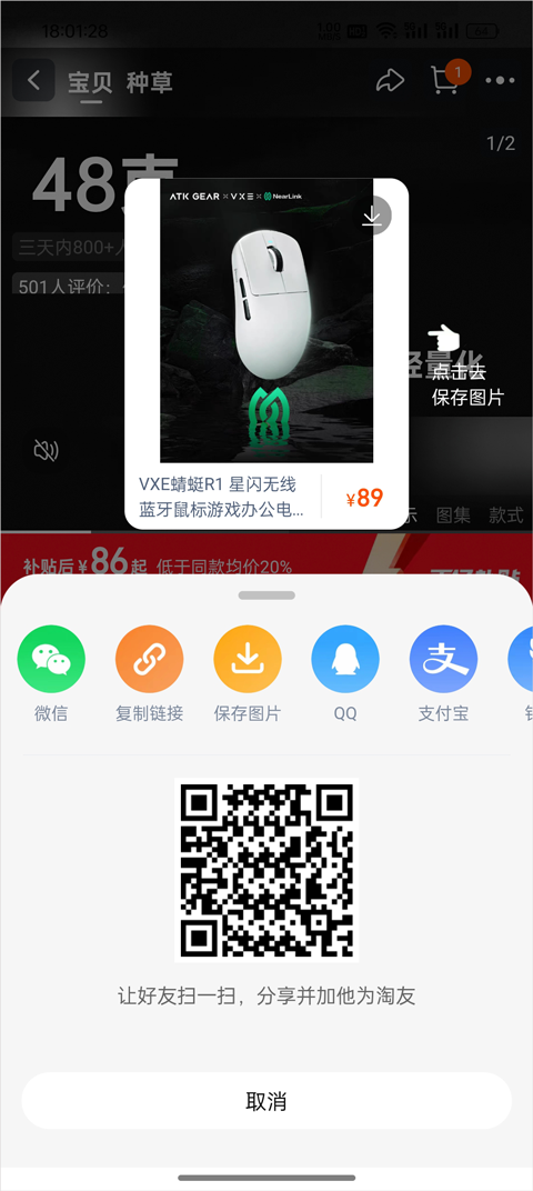 1、在逛淘宝时遇见喜欢的宝贝,在淘宝上点击「分享」,然后「复制链接」;