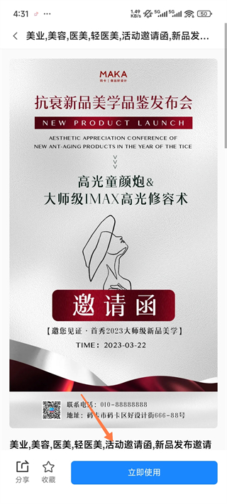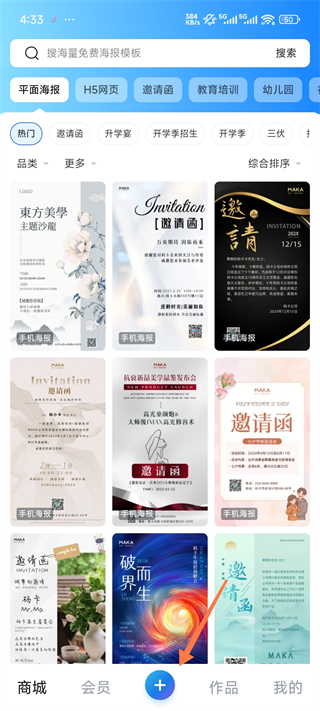 1、打开MAKA设计软件,在商城板块你可以进行搜索模版