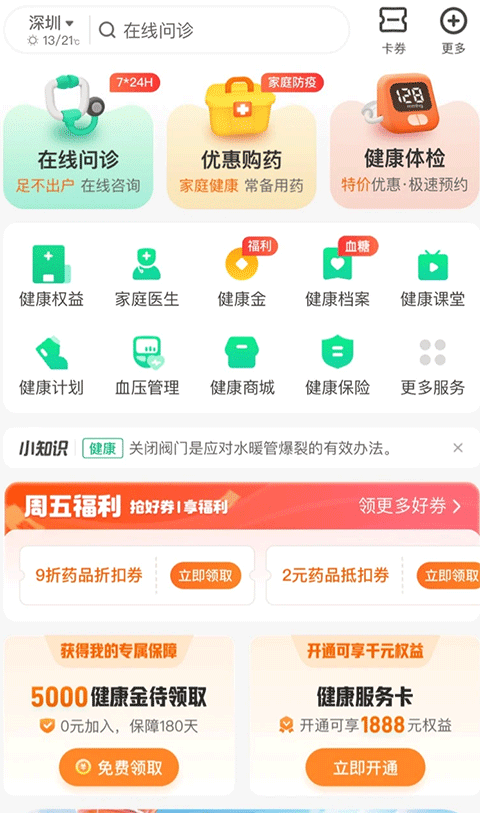 新用户注册即赠“新人大礼包”,包含保险优惠券、话费充值券及父母免费体检服务,多重好礼助力开启健康保障新生活。