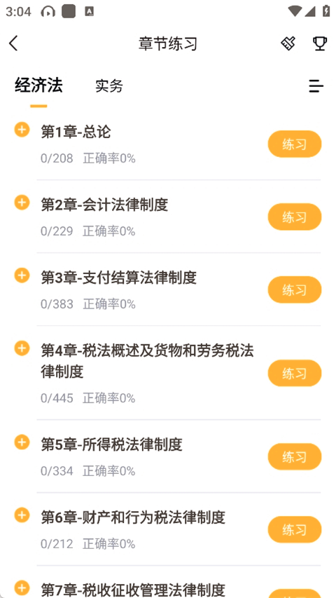 4、首页可以选择章节列表,点击章节练习,可以查看自己错题和正确率。