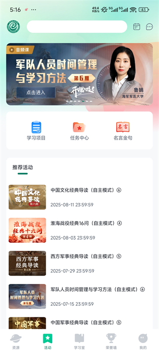 课程覆盖军事、文学历史等多领域,光军事教育就细分到训练方法、思政工作等专业内容,资源量高达2000万+。支持语音搜课超省心,还能做专属学习清单记录进度,碎片时间也能系统积累知识,体验感拉满!