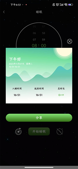 2、然后设置好睡眠时间,点击开始睡眠