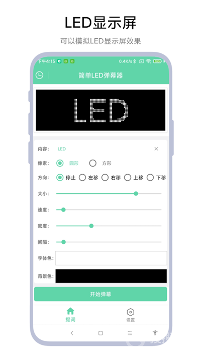 简单LED弹幕器是一个方便实用的手持弹幕软件。高清的LED显示屏,搭配自由定义的弹幕颜色、字体等设置,让你的手持弹幕与众不同