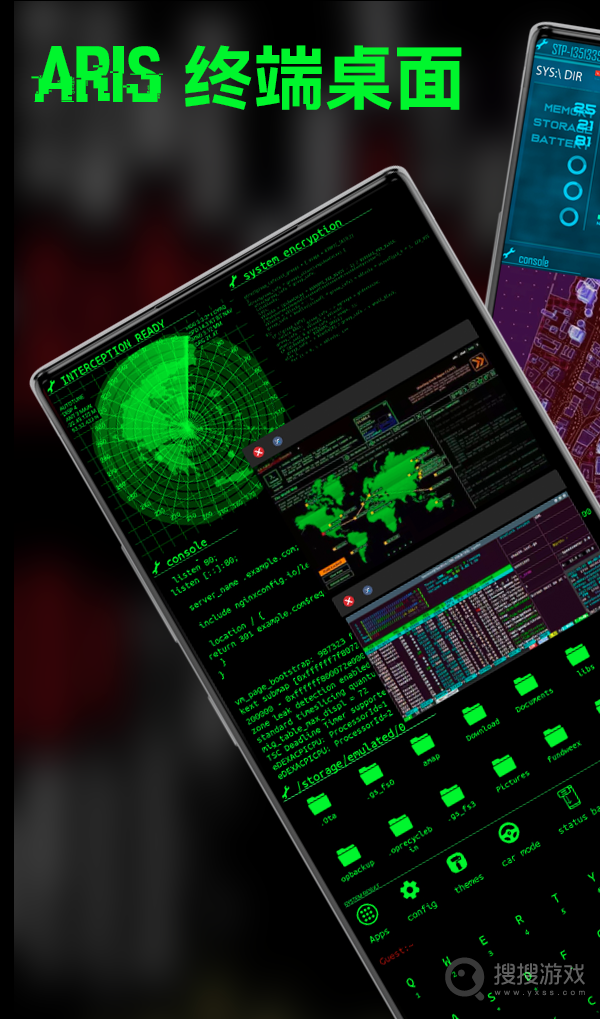 Aris终端桌面是你手机上的高大上主题应用,里面的主题操作起来就跟电影里黑客一样,各种数字图形花花绿绿看起来就很厉害!而且日常操作完全不受影响,比如查找app、拨号、计算器、查看天气、翻译、搜索文件等,快来享受极客般的快感