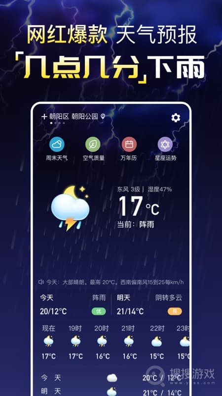 4、星座热门天气应用和8M内存不消耗流量,达到未来48小时分钟级天气预报