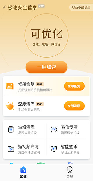 极速安全管家时刻保护手机安全,一键强力清理垃圾,极速安全管家还能帮助用户修复手机问题
