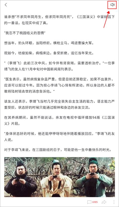 2、点击你要想阅读的文章,点击界面右上角的“小喇叭”图标就可以听新闻啦。