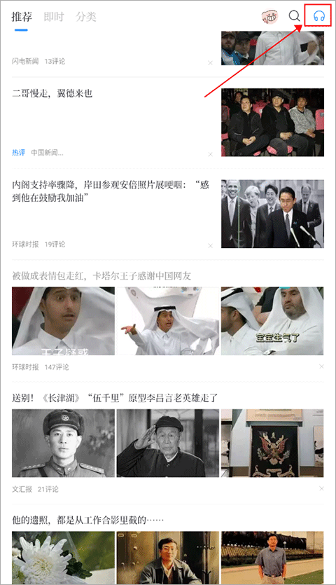 1、进到百度新闻app后,可以看到右上角有个耳机的图标,点击图标即可下载语音包。