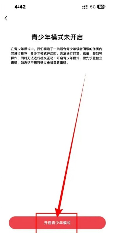 3、在青少年模式界面,点击【开启青少年模式】