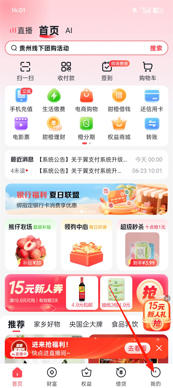 覆盖O2O商超、加油站等线下场景,每周五、周六常态享95折,叠加专属营销活动,吃喝出行更省钱。