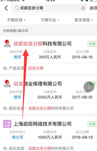 2、相关公司都会出来,选择你要查的企业;
