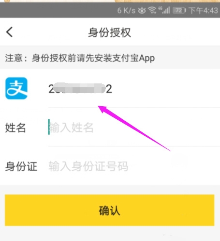 5、输入支付宝账号后,接着输入姓名、身份证号,点【确定】就OK了。