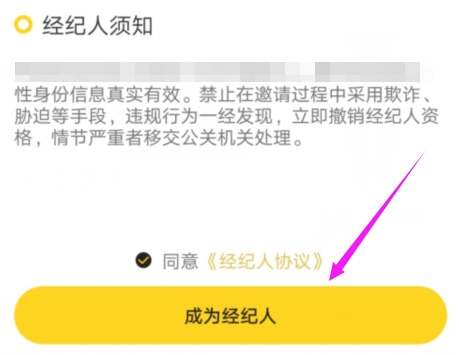 3、点下这个【趣聊经纪人】之后,那么,点按开【成为经纪人】了。