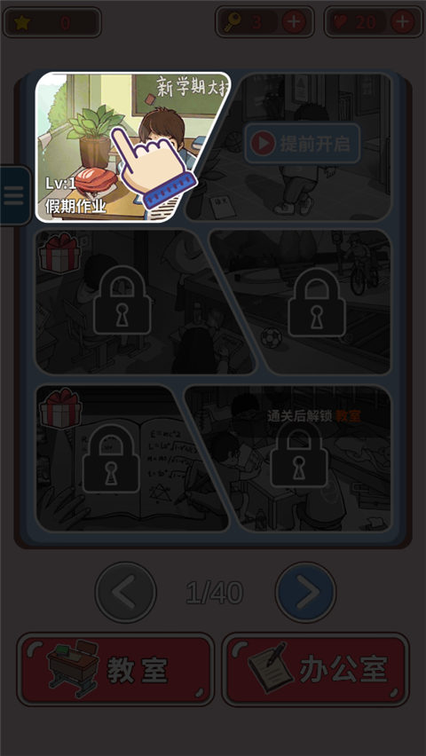 《中国式班主任》是一款融合幽默与怀旧的寻物放置游戏,带你重温学生时代的校园记忆。扮演高中班主任,穿梭于校园,寻找并教导违纪学生,助他们迷途知返。游戏玩法轻松有趣,结合寻物与放置元素,在闯关模式下搜集线索,辨别真假,解开谜题,引导学生重回正轨,争分夺秒地学习。每本作业本都是知识的积累,收集知识点提升学习效率,助力学生圆梦名牌大学,改写人生。让你的班级脱颖而出,成为校园明星。