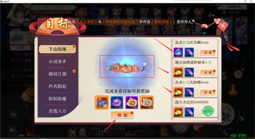 2、右边是达成目标的条件,达成条件能获得奖励。