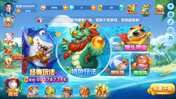每日登录送千万金币+VIP礼包,七天狂送顶级炮台,零门槛体验土豪式捕鱼快感!