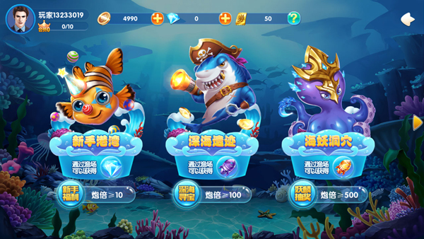 真人实时联网对战,与上万玩家同屏竞技,争夺海底霸主,体验最刺激的多人捕鱼狂欢!