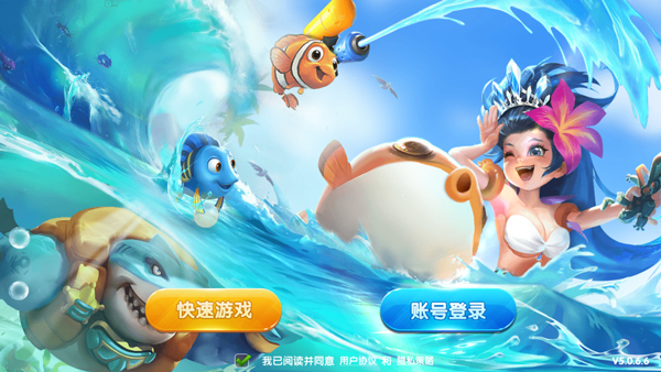 1、打开捕鱼大奖赛游戏,点击快速登录可以不用注册账号进入游戏;