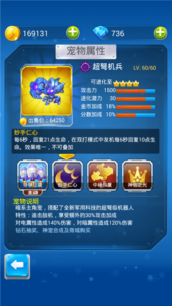 回复型宠物在飞机大战中也很常见,一般以妙手仁心、中场恢复等技能为主。玩家通过携带这些回复宠物提高自身主机的续航能力。一般回复弱、或者没有回复的战机如果想在后期打出自己的风采,那么回复型宠物是必备的。现在一线回复型宠物超弩机兵不但有回复能力,同时还有很强的输出能力。在这里强势推荐给单打大圣、关羽!