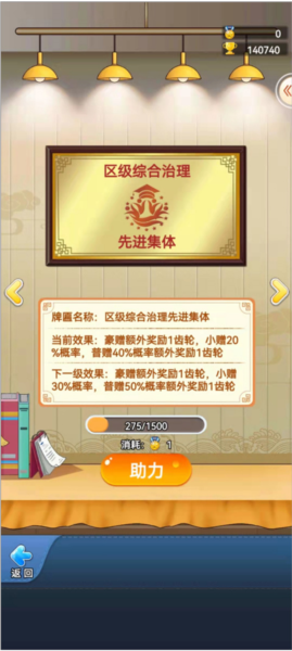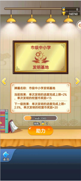 对于牌匾的升级,我个人的建议是:在综合治理先进集体至少升一级的前提下发明基地优先升级。因为如果综合治理先进集体一级不升级的话,捐献获得齿轮的概率为0,升一级后捐献齿轮的概率大大提高(豪赠获得的概率为100%,普赠40%),所以综合治理先进集体必须至少升一级。而升级发明基地的收益也是非常明显的,可以加快小发明的研究进度,还可以增加每次研究的的校盟币收益。如果单次发明的最高进度为7.5%,需要13.3次,而如果升级到10%,只需要10次就够了。如果单次研究如果可以增加15个校盟币,10次就可以增加150个,增加的部分足够买1个半价书包了。