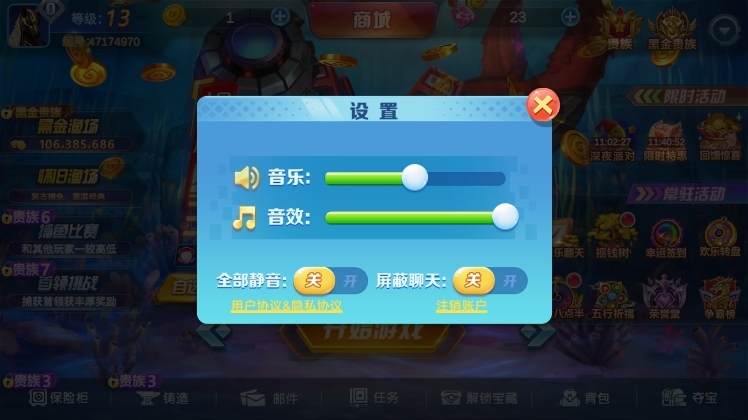 特效等级:分为“低/中/高/极致”四档。高特效下鱼群爆炸、炮弹光效更炫,但耗电量和发热量增加,建议根据设备性能选择。