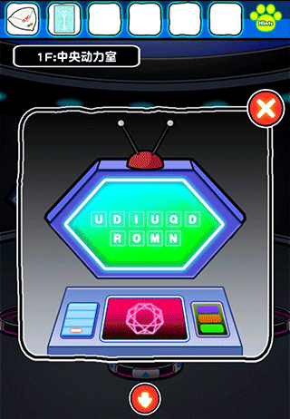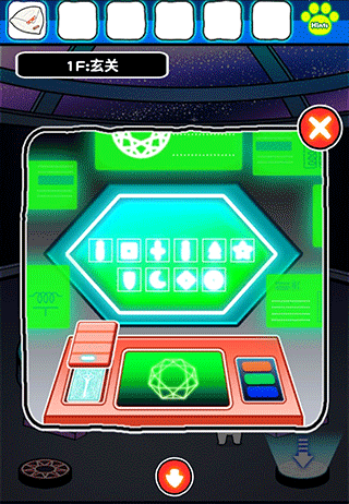 4、1F:玄关中间绿色屏幕上有图案,打开左边盖板,获得钥匙的设计图