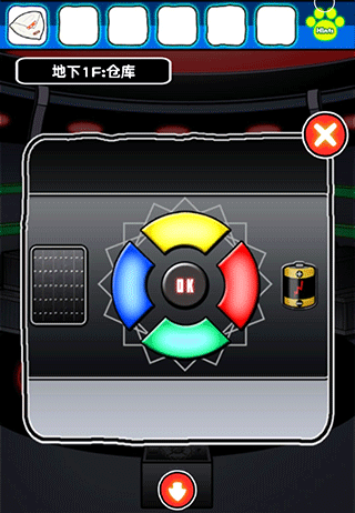 3、把电池放到最下方的台子上,然后按照地板上的4种颜色点亮,按按钮,芜湖起飞
