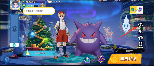 1、打开宝可梦大集结台服,进入后在游戏主界面,点击右侧第一个图标按钮;