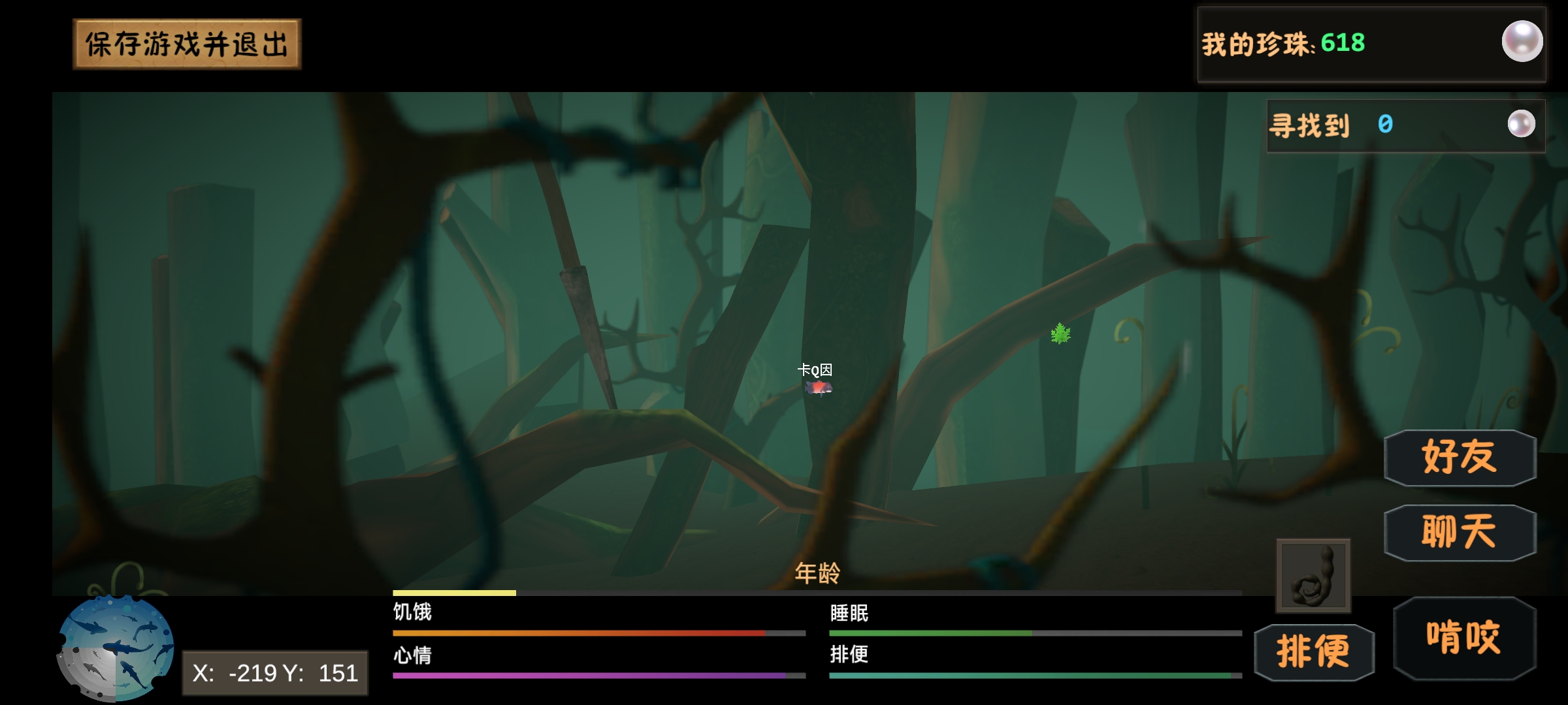 大鱼的血量是很高的,一个人打要打好久,很多小鱼不知道大鱼该怎么打。其实很简单,大鱼的身上会有冒绿光的地方,靠近啃咬键会变红,就可以咬它了。不同的鱼伤害都是一样的,咬大鱼需要小鱼们成群结队去咬,打败后会掉落珍珠和鱼肉,这里我因为着急抢珍珠没有截图,sorry了~(玩家之间无法互相伤害)