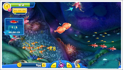 捕鱼达人2小丑鱼一般栖息于珊瑚礁与岩礁,常与海葵、海胆或小的珊瑚共生,形成小群到大群鱼群。基于它的共生特性,捕捉办法就很好想了,直接用1号和2号机枪360度无死角扫射就能很容易拿下。这也就是为什么10号炮弹能捉住大鱼,却总是让小鱼漏网的原因。小丑鱼由于尺寸小,所以也没有角度问题,只要炮弹够密集,它们就逃不掉了。
