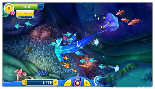 海洋中最凶猛的莫过于鲨鱼,它们强有力的下颚可以撕碎任何它们的猎物,它们生活在海洋生物链的顶端。在游戏中凶猛的鲨鱼也是分值最高的,让很多玩家垂涎不已。其实要打到它们很容易,只要用5号炮弹或者10号炮弹对着头和前半身狂轰滥炸即可。5号激光因为针对性强,非常适合屏幕下方的鲨鱼,而10号炮弹比较残暴,对鲨鱼也刚刚好。