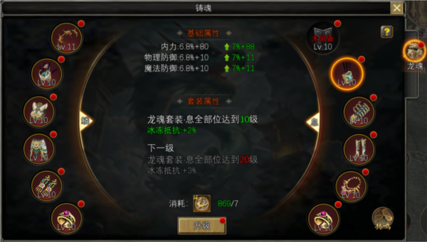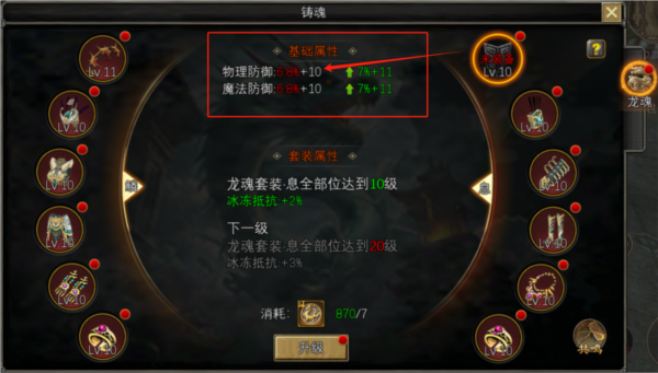 上回书说到,装备被划分成了龙魂套装·鳞和龙魂套装·息2组,为了鼓励大家均衡成长,还设计了套装属性!随着龙魂套装·鳞套装的不断养成,每10级均会为大家提供冰冻加强的百分比属性。龙魂套装·息则为大家提供冰冻抵抗效果。