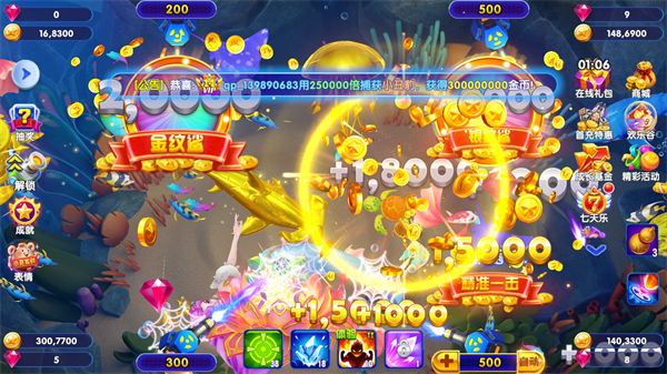 猎鱼达人九游版使用各具特色的武器,捕获各种神秘的深海鱼类,寻找各种神秘的收集品,解锁各种游戏成就,赚取丰厚的金币奖励。精美的画面、特炫的武器、轻松的节奏。