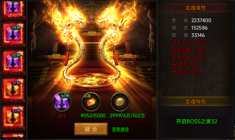 龙魂系统可以给玩家带来大量属性加成,以及炫酷的龙魂外显。