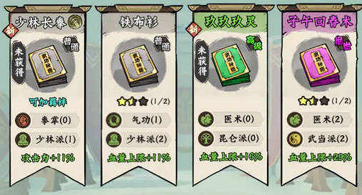 搭配原理:前期,主要依赖少林派的羁绊属性,通过增加血量上限和提升拳掌的攻击伤害加深来进行输出。“中后期,主角获得了神通“子午回春术”,可以同时加强医术和武当羁绊数。这样,主角在恢复攻击、造成伤害后补充血量时,还能显著提高回血效果。